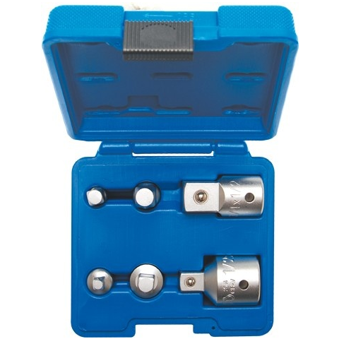 Króm-vanádium acélból készül; Matt króm bevont. A készlet tartalma: 1 db 1/4 belső méretű, 3/8 külső méretű adapter; Max. terhelhetőség: 60 Nm 1 db 3/8 belső méretű, 1/4 külső méretű adapter; Max. terhelhetőség: 60 Nm 1 db 3/8 belső méretű, 1/2 kül
