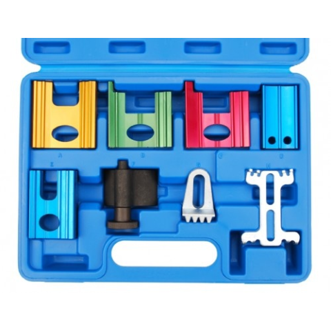 A készlet tartalma:Vezérműtengely rögzítő szerszámok, Opel Calibra, Omega, Sintra, Vectra, Saab 900, továbbá VW, Audi, Skoda, Seat és Ford modellekhezLendkerék rögzítő szerszámok, Citroen, Fiat és Peugeot modellekhezLendkerék rögzítő szerszámok, O
