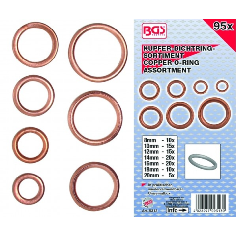 1 kép BGS 95 réz O-gyűrű készlet, 6-20 mm-es átmérő (BGS 9313)