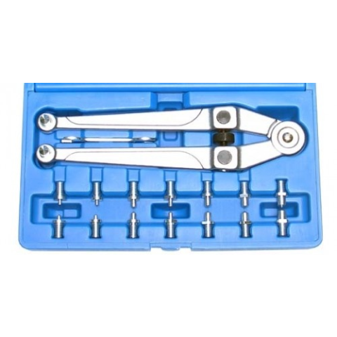 18 db-os készlet műanyag kofferben. Körmös kulcs mérete: 245 mm Tartozék: Különféle méretű cserélhető körmös csap-párok Méretek: 2,5 - 3.0 - 4.0 - 5.0 - 6.0 - 7.0 - 8.0- 9.0 mmÉlettartam anyag- és törésgarancia!