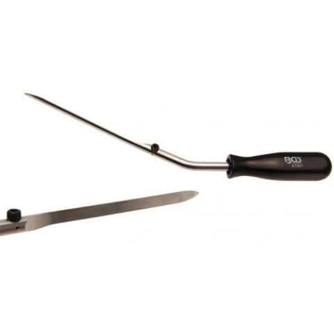 Speicálisan kialakított szélvédő kivágó szerszám Szándékosan hajlított hogy a beltérből a műszerfal felöl könnyen, és biztonságosan kivágható legyen a szélvédő alsó része Tulajdonságok: - Alkalmas minden autó szélvédő kivágására - A hosszú vágóél és
