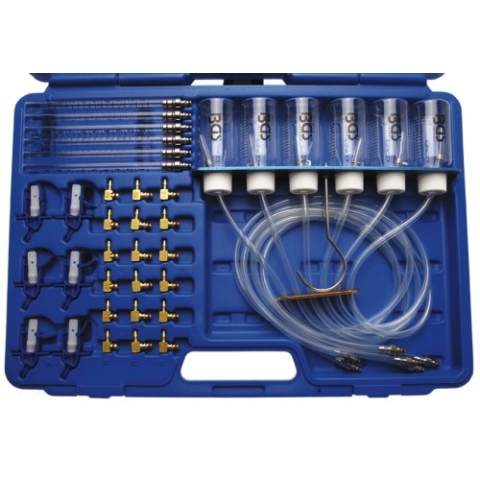 - Common rail (közös nyomócsöves) motorokhoz, 6 injektorosig - Alkalmas a különböző befecskendező márkákhoz - Meghatározása visszafolyás mértékét az üvegcsöveken vagy a mérő patronokon keresztül - A készlet tartalmaz: 6 db üvegcsőt, 6 db mérő patront