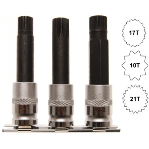 BMW kerékőr csavarok szakszerű ki- és behajtásához. Speciális méretek: - 17T x 14,5 mm (17 szögű Ribe bit 14,5 mm-es) - 10T x 16,0 mm (10 szögű torx bit 16,0 mm-es) - 21T x 16,5 mm (21 szögű xzn bit 16,5 mm-es)Élettartam anyag- és törésgarancia!