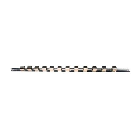 Krómozott kivitelű fém sín 12 db 3/4-os dugófej tárolásához. Teljes hossz: 560 mm, tartozék: 12 db klipszÉlettartam anyag- és törésgarancia!