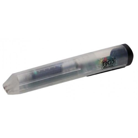 gyorsan és egyszerűen meghatározza a fékfolyadék víztartalmát közvetlen eredménykijelzés világító diódákkal: zöld =/< 1,5 % víztartalom sárga = 1,5 - 3 % víztartalom piros > 3 % víztartalom DOT3, DOT4, FH, DOT5.1 fékfolyadékokhoz nem alkalmas DOT5 fék