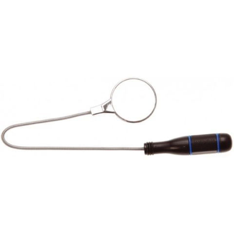 Kerek tükör; Praktikus, flexibilis szár. Adatok: Tükör átmérő: 55 mm Szár hossza: 475 mm Élettartam anyag- és törésgarancia!