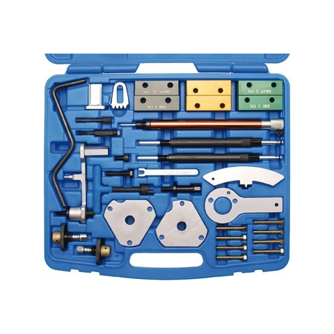 Táblázatos tájékoztatóval.A vezérlés következő részeihez használható:Vezérműszíj feszítőVezérműszíj tárcsaVezérműtengelyFőtengelyLendkerékÜzemanyag pumpa tengelyeA készletben lévő szerszámok OEM azonosítói: 1 860 847 000, 1 860 875 000, 1 870 697 000,