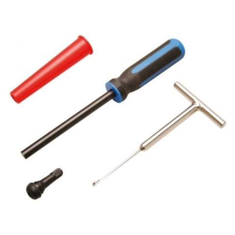 Lehetővé teszi a szelepszárak cseréjét anélkül hogy a gumit le kellene szerelni a felniről.A készlet tartalma:Eltávolító szerszám a hibás szelepszárakhozBehelyező szerszámok: behelyező tengely és vezető kúpÉlettartam anyag- és törésgarancia!