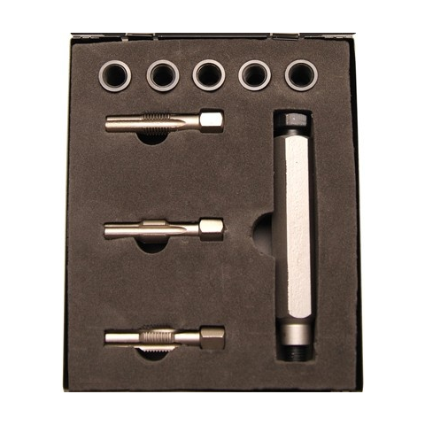 Kiváló megoldás a hengerfej izzítógyertya menetének javítására.A készlet tartalma:1 db menetfúró szár az eredeti menet tágításához1 db fúrószár az eredeti menet rövidítéséhez1 db menetfúró szár a menetjavító perselyhez1 db beillesztő szerszám a menetj