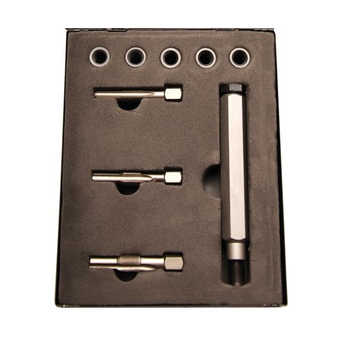 Kiváló megoldás a hengerfej izzítógyertya menetének javítására.A készlet tartalma:1 db menetfúró szár az eredeti menet tágításához1 db fúrószár az eredeti menet rövidítéséhez1 db menetfúró szár a menetjavító perselyhez1 db beillesztő szerszám a menetj