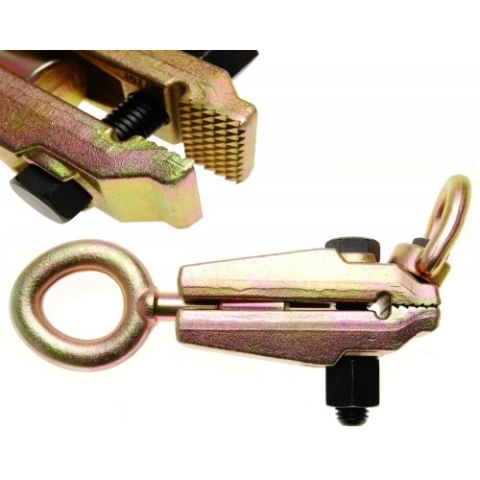nincs elcsavarodás a biztonsági eszköznek köszönhetően karom szélessége kb. 43 mm befogási mélység kb. 22 mm A karom tartóereje automatikusan növekszik a húzás hatására 35 x 42 mm vonószem Műszaki adatok: Bruttó súly 2302 g Hossz kb. 210 mm