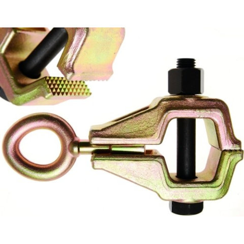 nincs elcsavarodás a biztonsági eszköznek köszönhetően extra nagy befogópofával karom szélessége kb. 45 mm befogási mélység kb. 40 mm A karom tartóereje automatikusan növekszik a húzás hatására 35 x 40 mm vonószemnyílással Műszaki adatok: Bruttó súly