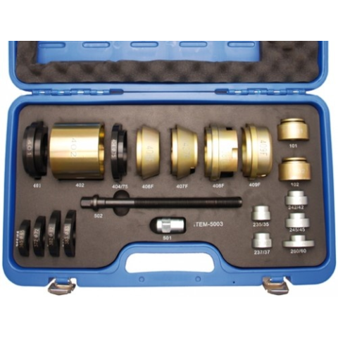 Peugeot, Citroën, Renault modellek kerékcsapágyainak cseréjéhez tartalmazza a kerékcsapágyak szétszereléséhez és felszereléséhez szükséges összes szerszámot Műszaki adatok: Bruttó súly 12500 g