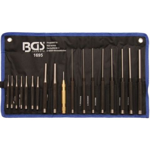 extra hosszú és vékony edzett, lakkozott tengely Szállítási terjedelem: 8 sasszegkiütő, 200 mm hosszú, 1,5 - 2,5 - 3,0 - 4,0 - 5,0 - 6,0 - 8,0 - 9,5 mm 2 sasszegkiütő, 150 mm hosszú, 8,0 - 9,5 mm 7 sasszegkiütő, 100 mm hosszú, 1,5 - 2,5 - 3,0 - 4,0 -