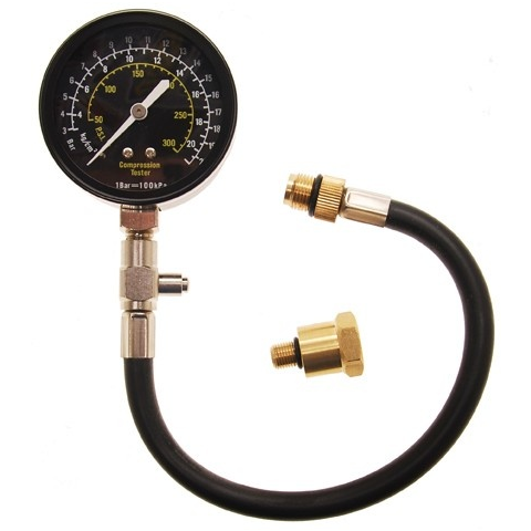 - Alkalmas motorkerékpárokhoz és autókhoz 12 mm-es vagy 14 mm-es gyújtógyertyáknál - 300 mm-es flexibilis csővel - Nagy méretű (Ø 70 mm), könnyen leolvasható skála - Pontosság: +/- 3% - Skála: 0-21 bar / 21,5 kg/cm² / 300 psi - Kifúvató szelep - A mot