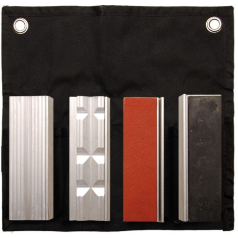 stabil tartás a beépített mágnes révén a kíméletes befogásért 2 hosszanti profilú pofák pl. menetes rudak, csavarok stb. rögzítéséhez 2 hosszanti és keresztirányú profilú pofa 2 műanyag lemezzel ellátott pofa a kényes munkadarabok rögzítéséhez 2 gumil