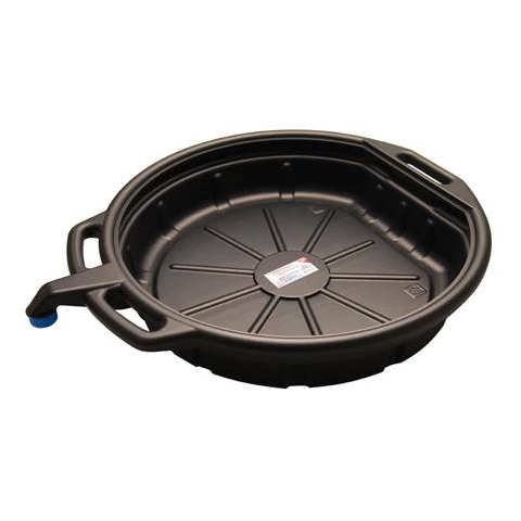 Olajleeresztő tál kiöntővel 16l. A termék jellemzői és paraméterei: Ellenáll a legtöbb oldószernek 60 °C-ig Alkalmazhatóság: savak, bázisok, alkoholok, olaj, benzin Átmérő: 570 mm Magasság: 120 mm Ütésálló Bruttó súly: 1200 g Anyag: nagy s