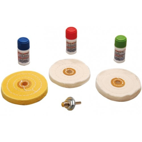Komplett készlet polírozó pasztával. Fémhez, acélhoz, rozsdamentes acélhoz és vashoz. Fúrógéphez való adapterrel.Élettartam anyag- és törésgarancia!