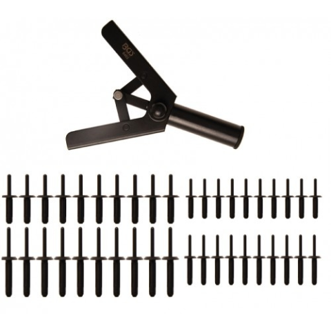 Ideális műanyag panelek, jármű belsők szegecselésére;2-4.5 mm-es szárú műanyag szegecsekkel használható.A készlet tartalma:1 db szegecselő40 db műanyag szegecs:10 db Ø5,0 x 15,8 mm10 db Ø5.0 x 17.2 mm10 db Ø6.6 x 17.2 mm10 db Ø6.3 x 25.2 mmÉlettartam