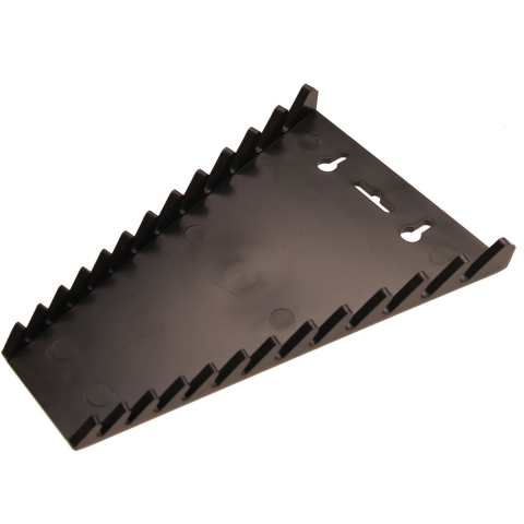 Falra szerelhető villáskulcs tartó 12 db kulcsnak. Mérete: 226 x 155 x 23 mm Műanyag, fekete. (Kulcs nem tartozék)Élettartam anyag- és törésgarancia!