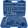 - Minden alkatrész króm-vanádium acélból készült - DIN szabványnak megfelelő erősség és forgatónyomaték - Super lock dugókulcsok - 3/8, 1/4 és 1/2 hajtás - 72 fogú racsnis hajtószárak A következő szerszámokat tartalmazza: 1/4 hajtáshoz: - reverzibilis