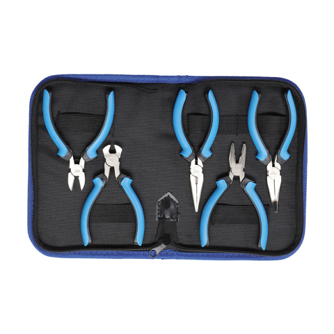 Műszerész mini fogó készlet. A termék jellemzői: Belső rugó Fekete cipzáras táskában szállítva Bruttó súly: 600 g A készlet tartalma: Kombinált fogó: 120 mm Oldalcsípő fogó: 115 mm Hosszú csőrű egyenes: 130 mm Hosszú csőrű hajlított: 125