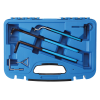 Angol nyelvű leírás (a magyar fordítást lásd lejjebb):• set for working and locking the tooth belt tensioner rolls• is needed when changing the tooth belt and during general engine repair jobs• for the most common VW, Audi, Seat, Skoda fuel and Diesel engines• spanner can be used as a counterholder• no displacing of tooth belt tension when tightening the nut• 3 tensioner pulley wrenches in different length and offset shapes used as OEM T10020, V159• 3 locking pins for tooth b
