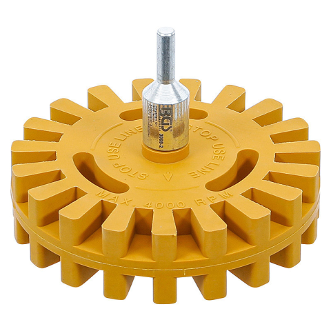 fúrógépekkel való használatáhozmatricák, ragasztó- és festékmaradványok eltávolítására festett felületekrőlA semleges színű gumi radírkorong megakadályozza a felület elkenődésétmeghajtótengely 6 mm, toldási hossz: 18 mmadapterrel 5/16 x 24 6,0 mm-re tenge