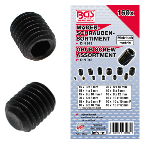 1 kép BGS Technic Hernyócsavar készlet, 160 darabos (BGS-14135)