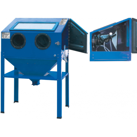 felületek homokfúvásához/tisztításához száraz fúvott anyaggal, például üveggyöngyökkel vagy műanyag granulátummal fúvottanyag-szigetelt zárófedél figyelőablakkal, a rögzített védőkesztyű és belső szűrő megakadályozza a fúvóanyag kiszökését megtakarí