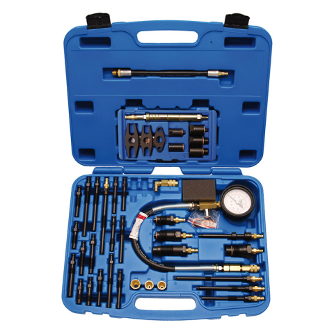 Kompressziónyomás-vizsgálat akár 50 bar (725 PSI) nyomásig lehetséges Gyorscsatlakozók egyenes és hajlított kivitelben Szállítási terjedelem: Izzítógyertya adapter a következő gyártókhoz: Alfa, BMW, Chrysler, Daewoo, Fiat, Ford, Hyundai, Isuzu, Land Rove