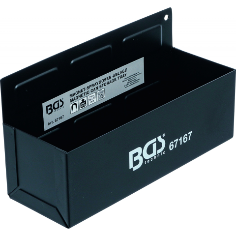 3 Ø 73 mm spray-dobozhoz 6 erős mágnes, melyek tartóereje kb. 1,8 kg A zárt padló megakadályozza folyadékok kilépését Műszaki adatok: Szélesség 210 mm Magasság 75 mm Bruttó súly 900 g Mélység 70 mm