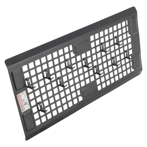 Mágneses tartó csavarhúzókhoz. A termék jellemzői és paraméterei: Mágneses szerszámfal 6 extra erős mágnessel és 18 kampóval Fekete porszórt Alkalmas műhelykocsikhoz Helytakarékos, lapos kialakítás Szélesség: 450 mm Bruttó súly: 1250 g Hos