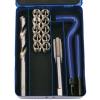 Erős, fém tartóban. A készlet tartalma: 1 db HSS-G menetfúró szár 1 db HSS-G csigafúró szár 1 db speciális behelyező szerszám 1 db csaptörő 10 db menetjavító persely Élettartam anyag- és törésgarancia!