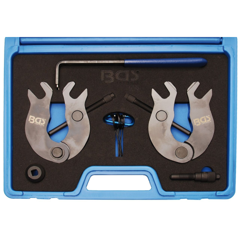 Motorvezérlés ellenőrzéséhez és beállításához, pl. vezérműszíj cseréje és egéb a motoron végzett munkák során;A Vezérműszíj cseréje különösen könnyen elvégezhető, miután a készlettel a főtengely és a vezérműtengely rögzítésre kerül.Kompatibilitás:Mode