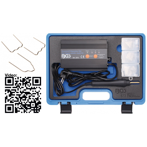 Ideális műanyag lökhárítók, panelek, rögzítő elemek, stb. javítására; Erősen igénybe vett területek megerősítésére is alkalmazható; A készülék 100-200°C közötti hőmérsékletre melegíti a kapcsokat, melyek így stabil kötést tudnak létrehozni; Üvegszálat