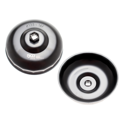 Olajszűrő leszedő kupak. A termék jellemzői és paraméterei: Meghajtás: 3/8 négyszög vagy 21 mm-es kulcs Profil: 18 szögű Átmérő: 135 mm Anyag: acéllemez Alkalmazhatóság: MAN TGA Bruttó súly: 530 g