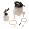 Angol nyelvű leírás (a magyar fordítást lásd lejjebb):• for quick and easy brake bleeding, can be used by one person only• large 1.5 l canister with aluminium nozzle and clamp for compressed air (lets you keep both hands free)• protects the main brake cylinder as no pumping required• can also be used for hydraulic clutches• 1000 mm silicone hose guarantees a long product life time• accurately fitting rubber adaptor for the bleeding nipple• 1 l canister with shut-off valve and