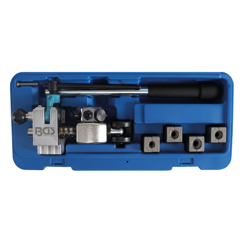 Angol nyelvű leírás (a magyar fordítást lásd lejjebb):• for flaring of brake and hydraulic pipes• can be used on copper, brass, aluminium and steel pipes• for coated and non-coated pipes• for inside and outside flaring• incl. 4 pairs of pressure pieces 3/16" / 4.75 mm - 1/4" - 6 mm - 8 mm• 5 mm tension bands and punches also availableMagyar fordítás (fordító automata segítségével):• a fék- és hidraulikus csövek flarálásához• réz-, sárgaréz-, alumínium- é