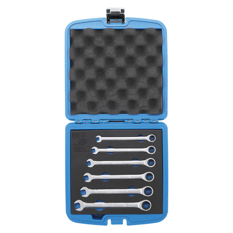 finomfogazású Szállítási terjedelem: 1 racsnis csillag-villáskulcs 8 mm (BGS 6508) 1 racsnis csillag-villáskulcs 9 mm (BGS 6509) 1 racsnis csillag-villáskulcs 10 mm (BGS 6510) 1 racsnis csillag-villáskulcs 11 mm (BGS 6511) 1 racsnis csillag-villáskul