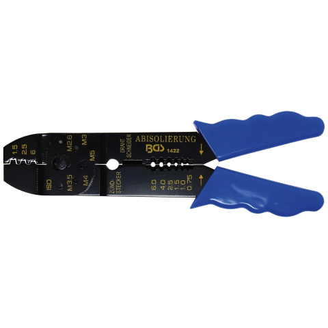 - 3 mm vastag - Oldalcsípő funkcióval - Kábel csupaszítás: 0,75 - 1,0 - 1,5 - 2,5 - 4,0 - 6,0 mm - Csapszeg fej vágás: M2,6 - M3 - M3,5 - M4 - M5Élettartam anyag- és törésgarancia!