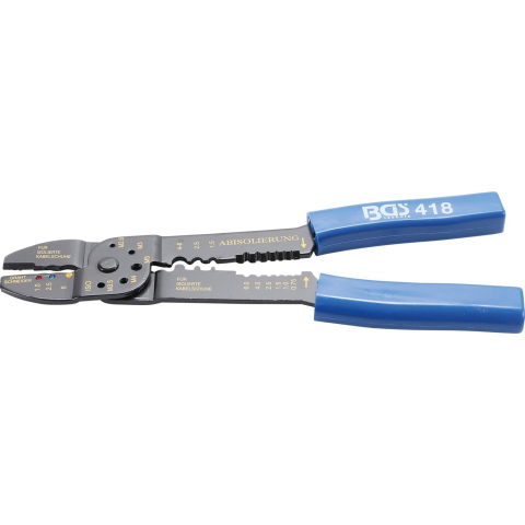 drótvágóval szigetelt és nem szigetelt csatlakozók kombinációja esetén kék puha markolatok Anyagvastagság: 3 mm nem szigetelt 1,5 - 2,5 - 4,6 mm-es összekötőkhöz szigetelt 1,5 mm (piros) - 2,5 mm (kék) - 6 mm (sárga) összekötőkhöz Csupaszolás: 0,75 -