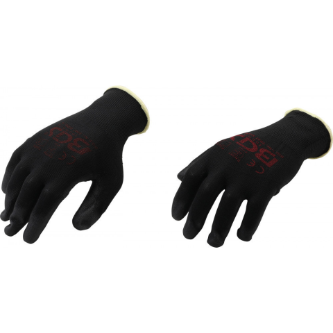 Szerelőkesztyű. A termék jellemzői és paraméterei: 	Alkalmas gumiszervizhez, iparhoz, autóipari szereléshez stb. 	Részleges PU bevonat 	Nagyon jó illeszkedés és biztos fogás 	Jó tapintású 	Kötött csuklópánt 	Bruttó súly: 50 g 	EN388 – CAT II (313