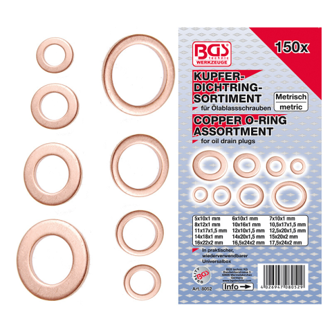 1 kép BGS Technic Tömítőgyűrű-készlet, Vörösréz, 150 darabos (BGS-8052)