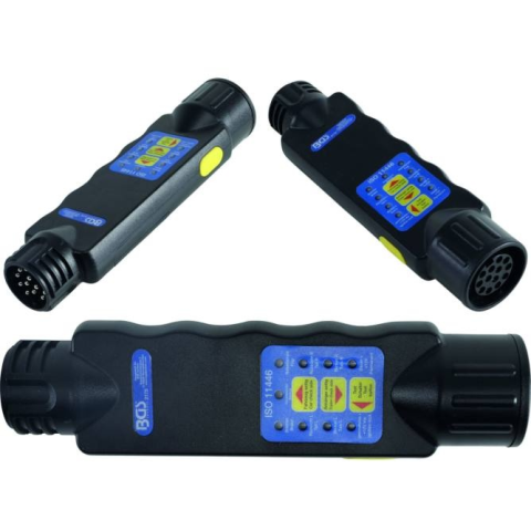 Autók, lakóautók, stb. és utánfutók közötti elektromos rendeszerek ellenőrzésére;13 tűs, 12 V csatlakozókhoz;9 V teleppel működik (nem tartozék).Élettartam anyag- és törésgarancia!