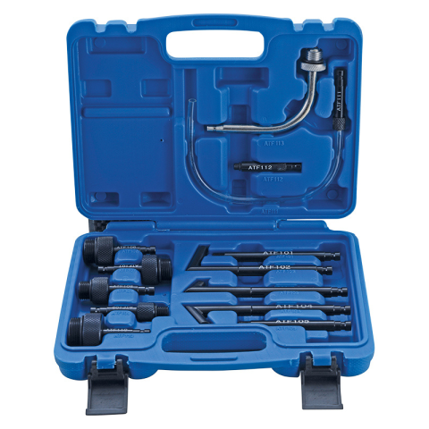 Váltóolaj betöltő adapter készlet. A termék jellemzői és paraméterei: Adapter készlet az automata sebességváltók olajcseréjéhez és utántöltéséhez és A készlet 13 db adaptert tartalmaz, amely használható a legnépszerűbb személyautó márkák sebességvál