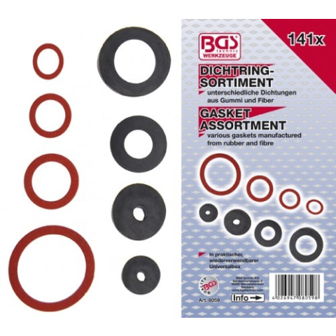 különböző gumi és üvegszálas tömítések szaniterterületen történő alkalmazáshoz fekete teljes gumi tömítőgyűrűk erősített papírszálas piros tömítőgyűrűk Szortimentdobozban Szállítási terjedelem: 10 tömítőgyűrű 1/2 x 16 mm 5 tömítőgyűrű 3/8 x 8 mm 10 t