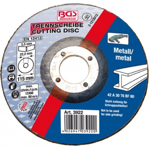 1 kép BGS Vágókorong fémhez 115 x 2,5 mm, Tipus 42