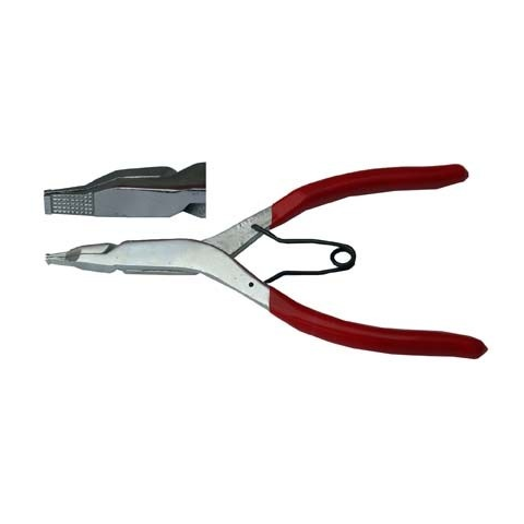 Záró,- Seeger gyűrű leszedő fogó speciális fej kialakítással Különösen a tengely- és sebességváltó tengelyek záró- / rögzítőgyűrűire lett kialakítva. Tulajdonságok: - Chrome-Molibdén acélból készítve - Hosszúság: 220 mm - Chrómozott felületű - Szi