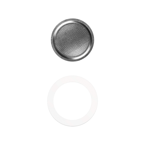 Eredeti Bialetti alkatrész, mely a 6 adagos Venus, Kitty és Musa kávéfőzőkkel kompatibilis. A szett tartalma: 1 darab szilikon tömítés és 1 darab rozsdamentes acél szűrő.